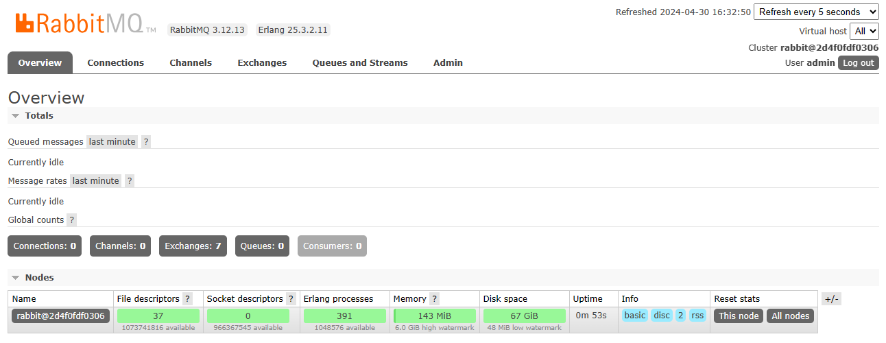 登录成功后,会进入 RabbitMQ 控制台界面
