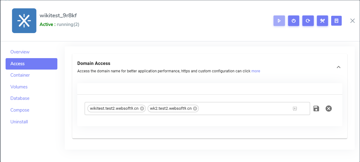 1. Login to Websoft9 Console and open the Access tab of application management interface from My Apps