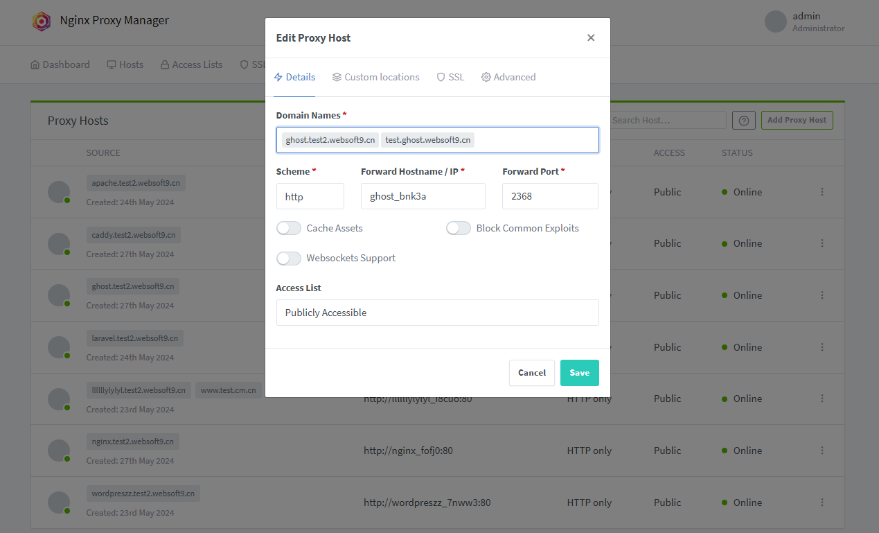 1. Login to Websoft9 Console, open the Hosts > Proxy Hosts of Gateway
