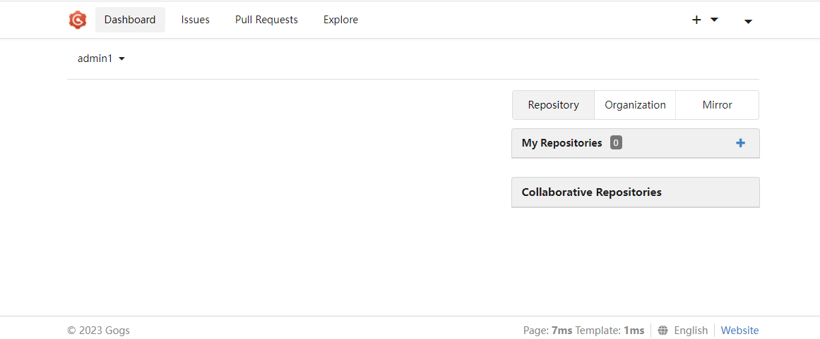 - Multilingual (✅): Gogs automatically adapts to the browser language, which can also be selected from the bottom menu
