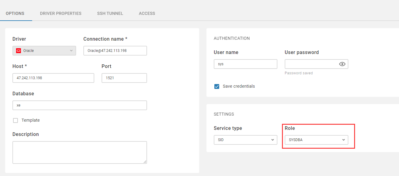 - Role: SYSDBA