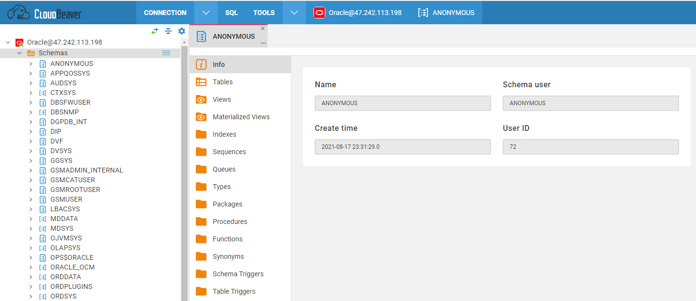 We recommend using CloudBeaver as the web-based management platform for Oracle databases: